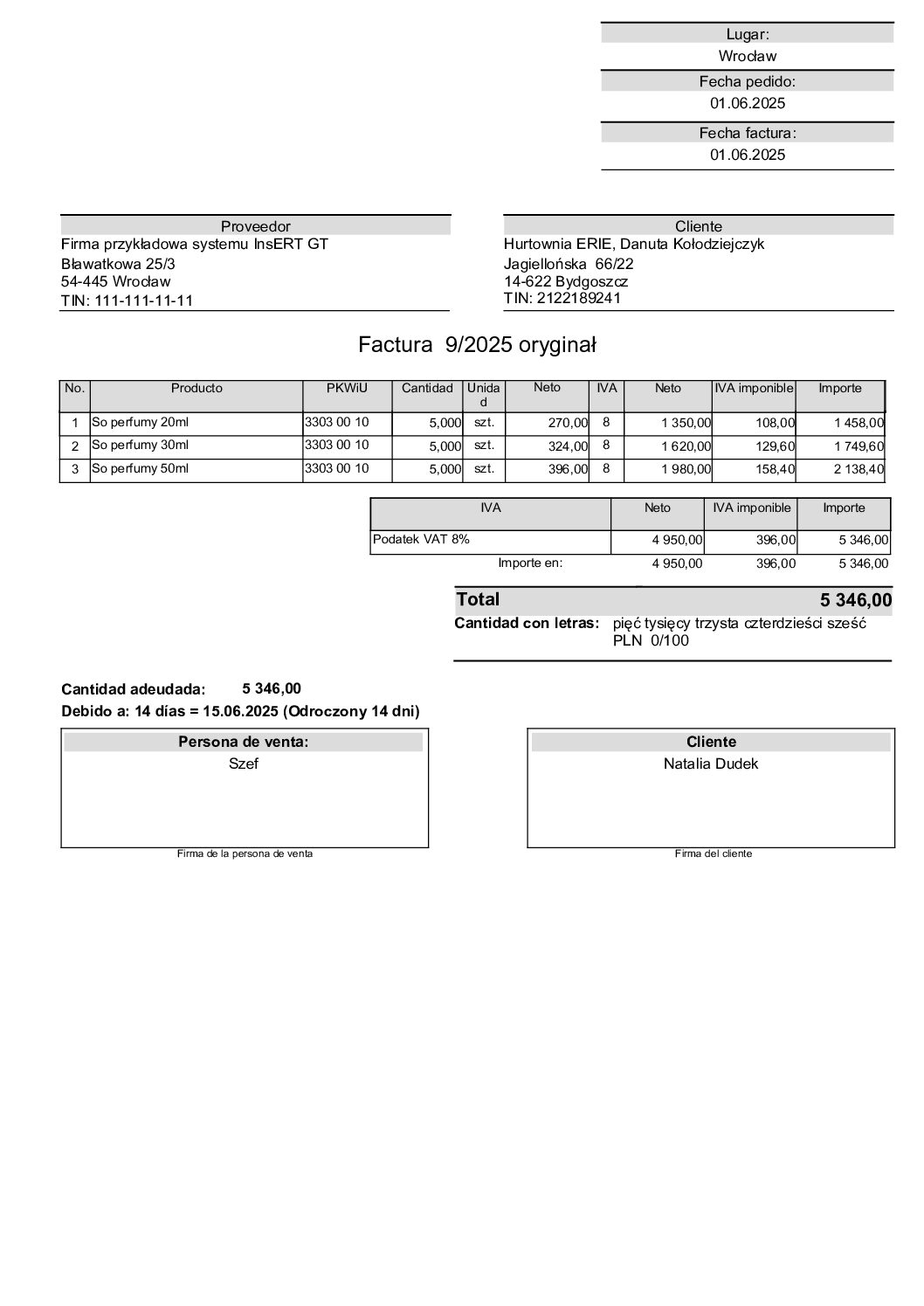 Wzorzec wydruku do Subiekta GT – Faktura Sprzedaży język hiszpański
